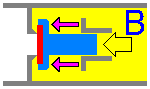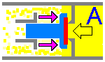 セカンドステージのデマンドバルブには 「下流側に開く」ダウンストリーム型《図A》が使われており、中圧空気(一次減圧値)はスプリングの張力[→]によって その放出が抑えられています。